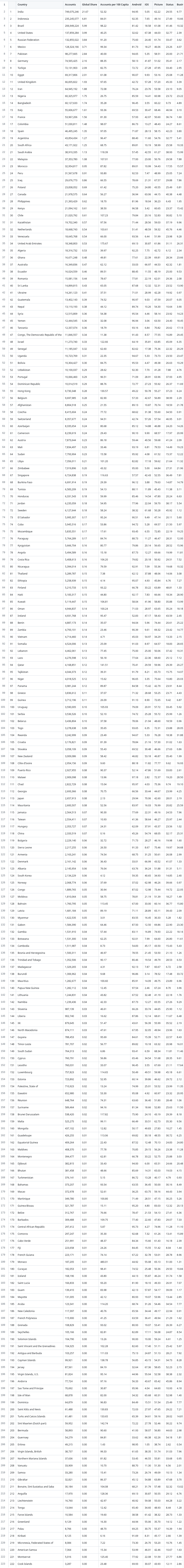 WhatsApp kullanımının dünya üzerindeki yeri.